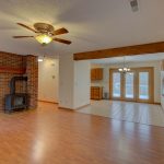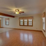 kitchen next to a dining area with a lovely wood beam accented ceiling. The owner’s bedroom on the main w/ walk-in