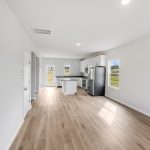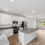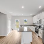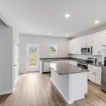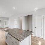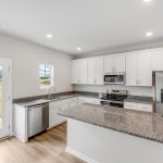 provides both privacy and the convenience of quick access to I-40. The main level features a bright and inviting great room filled with natural light from large windows, creating a warm and open atmosphere. The chef’s kitchen is a true highlight, showcasing white cabinetry, granite countertops, a spacious island with a breakfast bar, stainless steel appliances, and a dedicated dining area ideal for casual meals or entertaining guests. Upstairs, the primary suite offers a spacious walk-in closet and a luxurious private bath with dual sinks and granite countertops. Two additional bedrooms share a full bath with matching finishes, providing comfort and style for everyone. Enjoy the covered front porch for relaxing outdoors, and a
