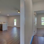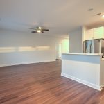 vaulted ceilings, providing a spacious and airy feel throughout. Enjoy the elegance of luxury vinyl plank flooring and modern lighting fixtures in every room. The kitchen is a chef’s delight, featuring an island, all stainless steel appliances, and 9-foot ceilings. Admire the exquisite Carrara marble countertops, subway tile backsplash, and 42″ tall shaker-style kitchen cabinets with soft-close functionality. The premium finishes extend to the bathrooms, which also feature Carrara marble-topped vanities and ceramic wall tiles. It also has dedicated laundry room located just off the kitchen. The primary suite offers a tranquil retreat with a walk-in closet, ensuring ample storage space. It is partially fenced, providing a perfect