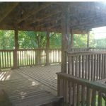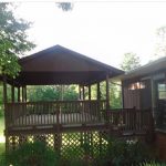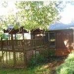 Living room with brick fireplace. Enjoy a quiet afternoon on your spacious covered deck overlooking an expansive