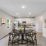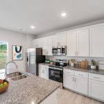cabinetry, granite countertops, a large island with a breakfast bar, stainless steel appliances, and a dedicated dining area ideal for casual meals or entertaining guests. Upstairs, the primary suite offers a roomy walk-in closet and a private