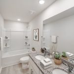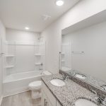 bathroom with granite countertops. Two additional bedrooms share a full bath with matching finishes, providing comfort and style for everyone. Additional highlights include a 2-car garage with an opener, a covered front porch perfect for