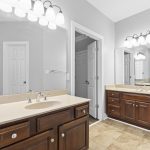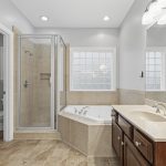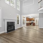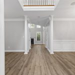 privacy. As you enter, you’ll be captivated by the 2-story great room featuring a beautiful staircase, creating an inviting and grand first impression. The main level hosts the luxurious primary bedroom, complete with a spa-like en-suite bathroom featuring his-and-hers vanities, a walk-in shower, and a large whirlpool tub. Step outside to enjoy the spacious screened porch and a huge deck, perfect for relaxing or entertaining while overlooking the picturesque surroundings. The lake community offers scenic walking trails, allowing you to immerse yourself in nature right in your neighborhood.
