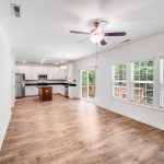 Discover this charming and spacious 4-bed, 2.5-bath residence nestled on a generous 1-acre lot in a peaceful Concord, NC neighborhood. Step inside to a stunning living room featuring elegant laminate flooring, decorative corner moldings, a classic ceiling fan, and a warm, inviting fireplace. The kitchen features a large island, pristine white cabinetry for ample storage space, and sleek stainless steel appliances. Retreat to the generous primary suite, fully carpeted for comfort, boasting a luxurious ensuite bath with dual sinks, a soaking tub, separate shower, and a walk-in closet for all your storage needs. Enjoy seamless indoor-outdoor living with direct access to a wooden deck overlooking a serene, tree-lined backyard, perfect for relaxing, gardening, or weekend barbecues. Conveniently located close to shopping, dining, and with easy