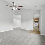 features soaring vaulted ceilings, a cozy gas log fireplace, and plenty of natural light. The spacious kitchen is equipped with white appliances and offers ample storage and counter space, perfect for meal preparation. Enjoy family dinners in the formal dining room, or relax in the peaceful master bedroom suite, complete with a garden tub and a separate shower for your comfort and convenience. Recent updates and upgrades include: Brand-new roof, fresh carpet throughout, freshly painted interior, new range in the kitchen, beautifully landscaped yard. Whether you’re relaxing on the front porch or enjoying the modern updates inside, this home is ready for you to move in and make it your own. Don’t miss out—bring an offer today!