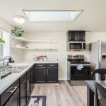 stainless appliances skylight for natural light and open shelving. Laundry room just off of the kitchen that leads outside to