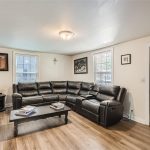 upstairs with walk in closet. Flex room upstairs perfect for office or craft or media room. Flat rear yard fenced in with stone patio storage shed and play room. Very large living room open to eat in kitchen. Newer LVP on main. All windows have 2″ blind window treatments. The home is being sold as is.
